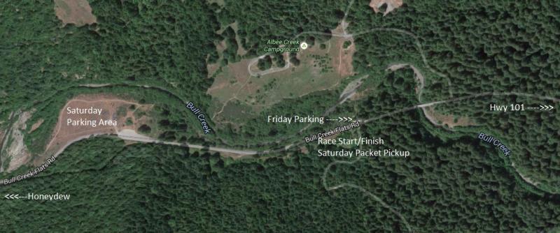 The race is located in Southern Humboldt County, 45 miles south of Eureka, California, in Humboldt Redwoods State Park.